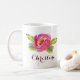 A lovely feminine design featuring a bright fuchsia watercolor rose blossom with leafy accents and a custom name. Insert your name in place of the sample name shown on both sides of this mug for a custom gift or treat for yourself.