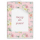 Old-fashioned watercolor rose bouquet on pink blush background for 90th birthday.