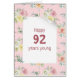 Old-fashioned watercolor rose bouquet on pink blush background for 92nd birthday.
