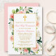 Watercolor Roses Flowers Pink Gold Frame Communion Invitation