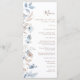 Faites une magnifique fête de l'amour et de la nature avec notre menu Rustic Boho Mariage Watercolor. Ce menu exceptionnel et unique apporte une touche de chic boho avec de magnifiques fleurs sauvages d'aquarelle peints à la main dans des teintes douces de blues pâles et poussiéreuses, agrémentées de tanins terreux. Notre modèle facile à customiser vous permet d'insuffler votre voix personnelle en la faisant vraiment vous-même. Cette belle carte est parfaite pour des mariages romantiques et élégants à toute heure de l'année ! (Texte tan foncé.)