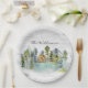 Watercolor Rustic Foggy Forest Mountain Cabin Paper Plate