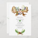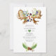 Trendy wild woodland bridal shower invitation featuring hand painted watercolor bouquets with forest berries - blueberry, blackberries and sprigs, pine cones, ferns, feathers and moose horns.