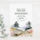 This Watercolor Rustic Mountain Wedding Invitation features hand-painted mountains, pine trees, winding paths, and wildflowers in moody tones of blush pink, deep green, sage, and muted blue. Designed with a modern cowboy serif paired with a warm, approachable serif font in rich forest green, it blends rustic charm with refined elegance. Perfect for mountain, woodland, or outdoor weddings, this invitation sets a heartfelt and unforgettable tone for your special day.