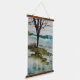 Watercolor Rustic Tree and Water Landscape Hanging Tapestry