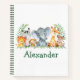 Watercolor Safari Jungle Animals Drawing Notebook. Baby Animals include Elephant, Monkey, Giraffe, Rhino, Zebra and Lion on fern leaves. Watercolor Botanical Greenery. Add Name.
