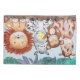 Your child will love this fun pillowcase with a wild animal tropical jungle theme. Watercolor animals--a lion, a zebra, a giraffe and a monkey sit in the jungle under a canopy of tropical leaves. Matching duvet cover and other room accessories are available.