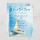 Our Beautiful Watercolor Sailboat Wedding Save the Date card is the perfect blend of a beachy, tropical carefree feel. The blue watercolor serves as a beautiful backdrop and accentuates the serene sailboat.
