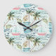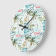 Watercolor Sailboat with Palm Tree Pattern Large Clock