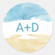 These watercolor sand and sea wedding envelope seals are perfect for a beach wedding. The abstract design features yellow and blue watercolor texture which is arranged to bring out seaside ocean vibes. Personalize the label with the initials of the bride and groom.