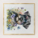 Gorgeous Watercolor Salt and Pepper Schnauzer Puppy design with yellow, purple and blue flowers and gold frame