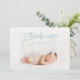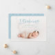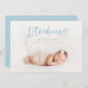 Stunning blue watercolor script text photo birth announcement. Part of a collection.
