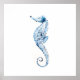 Watercolor Seahorse Print Blue