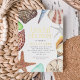 Cute summer beach theme bridal shower invitations feature a border of watercolor sea shells, starfish, and sea glass, including junonia, conch, sand dollar, auger, and clam. Personalize with your bridal shower details in the centre with gold foil accent lettering.