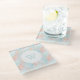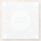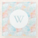 Watercolor seashell pattern monogram coasters in shades of ocean and sunset.