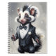 Watercolor Skunk Tuxedo Black Tie White Flower Notebook