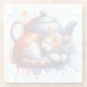 Watercolor Sleeping Cat Teapot Glass Coaster