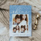 Share holiday greetings with these chic Hanukkah photo cards featuring three of your favourite photos (1 landscape, 2 square) arranged in a rectangular collage layout on a pale blue watercolor wash background accented with falling snow. "Shine" appears at the top in elegant hand lettered script typography. Personalize with your custom Hanukkah greeting, name(s) and the year along the bottom. Cards reverse to a stripe pattern in matching pastel blue and white.