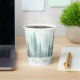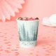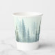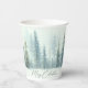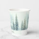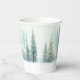 This beautiful watercolor pastel Christmas cup features a snowy forest scene with towering pine trees.