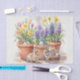This charming tissue paper features a delightful springtime/Easter design. The watercolor artwork showcases clay containers brimming with vibrant spring flowers, including tulips, hyacinths, and daffodils. Blue Easter eggs and endearing bunny rabbits add a touch of festive charm. This versatile paper is perfect for Easter decoupage crafts or elegant gift wrapping. As a template, this image allows for the transfer of the artwork to various products, such as greeting cards, postcards, and home décor items, offering a wide range of creative possibilities.