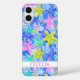 Customize this colorful watercolor starfish in blue, aqua, yellow and pink iPhone 16 plus case with your your name in a trendy modern CAP font in pink on white. It's so modern and trendy!