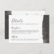 Elegant Celestial Wedding Details Card. Featuring a mix of script and classic serif fonts, this design has a white background with dark grey watercolor accents on the side and gold stars. Perfect for a celestial wedding under a starry night, this card includes essential details about the reception, accommodations, travel, attire, and more. Exuding simplicity and elegance, it ensures your guests are well-informed for your magical evening. Customize all text with your information and adjust the background colour if needed. Enjoy a beautiful and sophisticated design for your special night under the stars.
