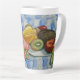 This art mug has an image of my original still life water-colour painting printed on it. The still life picture is titled "An Exotic Treat" because it's made up with exotic fruit. you can see passion fruit, kiwi fruit, plums, lime, avocado and some other items that I can’t remember the name of, but some of the pieces of fruit have a few nibbles taken from them to show the interesting texture of the inside of the fruit. I think this great blue and white art mug will make a very nice gift for someone special, it'll make a "different" fathers day or mothers day pressy and really original christmas gift. But maybe you just want to treat yourself to an quirky art mug.