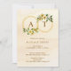 Watercolor Style Gold Floral Christmas Wreath with Initials Wedding Invitation with Back QR Code.