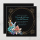 Bright watercolor succulents with gold drawing outlines for a rustic feel. Black background for a night wedding. Teal accents colours can be change to any colour.