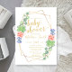 Beautiful elegant baby shower invitations with floral botanical watercolor cactus succulents surrounded by a gold geometric terrarium frame. This custom chic modern design can easily be personalized with your shower details.
