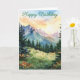 A lovely watercolor mountain during summer with trees and flowers. Suitable for a birthday card, for anyone