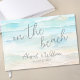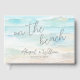 The front cover features the phrase "on the beach" in sweet script, with the bride and groom’s names and wedding date below in a clean, modern serif font. The spine continues the design, with the couple’s names and date in a simple sans serif font for a polished, understated finish.