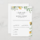 Sunflower and Foliage on White Wedding RSVP Response Card. Dinner Options.