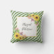 Watercolor sunflowers, gold frame and green striped pattern throw pillow. A lovely design showcasing a beautiful bouquet of sunflowers on the corners of a gold frame and a striped pattern in green.