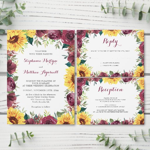 Sunflower Burgundy Rose Floral Border WeddingDesigned by Gail K