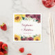 These wedding napkins feature watercolor sunflowers, burgundy roses and green leaf foliage. Personalize them with your names and wedding date. These napkins are part of a collection which includes a full range of matching wedding stationery and bridal products. Please visit our store or our collection pages to see the full range.
