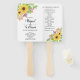 Yellow watercolor sunflowers, fall leaves and berries floral wedding program hand fan. It showcases a gorgeous bouquet of sunflowers with green leaves, autumn leaves and berries.