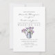 Watercolor purple and coral baby pink sweet pea floral wedding invitation customizable to your event specifics.