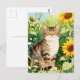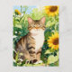 Watercolor Tabby Cat in Sunflower Garden Postcard