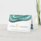 This elegant wedding thank you card features watercolor teal geode stones, with faux gold typography and splashes, and a faux gold ampersand. (Floral ampersand via www.createthecut.com)