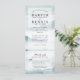 Modern wedding invitation, featuring a landscape with teal watercolor smoky misty mountains