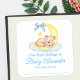 Watercolor Teddy Bear on the moon and clouds with blue bow Baby Shower Bookplate Labels.