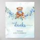 Watercolor Teddy bear blue floral greenery drinks Poster