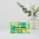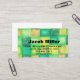 A contact card that's definitely a standout! Watercolored tiles in greens and turquoise with bold text.