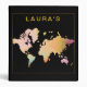 Clean world map in gold on black surface for presenting all data of events in a binder