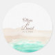 This round wedding sticker features watercolor ocean waves and soft sandy tones inspired by tropical beaches. Perfect for sealing envelopes, decorating favour bags, or adding a polished detail to wedding stationery. The minimalist coastal design pairs beautifully with destination and seaside weddings. Ideal for beach ceremonies, island celebrations, or resort weddings. Fully customizable with names, dates, or short messages. A simple yet elegant accent for tropical wedding decor.