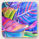 Beautiful original art painting of colourful rainbow tropical canna leaves foliage. Bright vibrant colours. Watercolor fine art.