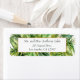 Summer beach wedding address labels with tropical foliage.