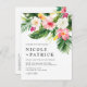 This tropical wedding invitation postcard is perfect for couples planning a tropical wedding or destination celebration or simply for those who adore vibrant florals.