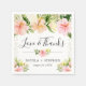 Elegant Watercolor tropical jungle pink flowers design with gold glitter confetti borders